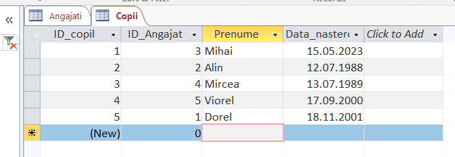 Deschidem tabelul COPII. Coloana