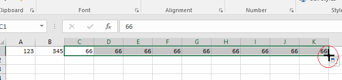 → se apasă butonul stâng şi cu el ţinut apăsat se umple şi celelalte celule: