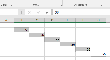 Se selectează pe rând celulele dorite (ţinând apăsată tasta CTRL) → Se tastează valoarea dorită în ultima celula activă → CTRL + Enter şi valoarea tastată apare în toate celulele selectate: