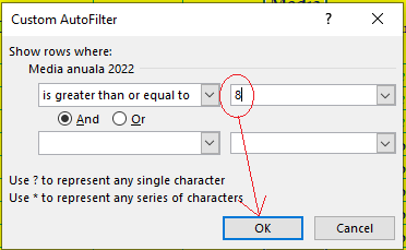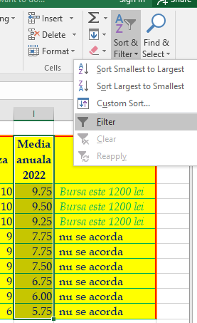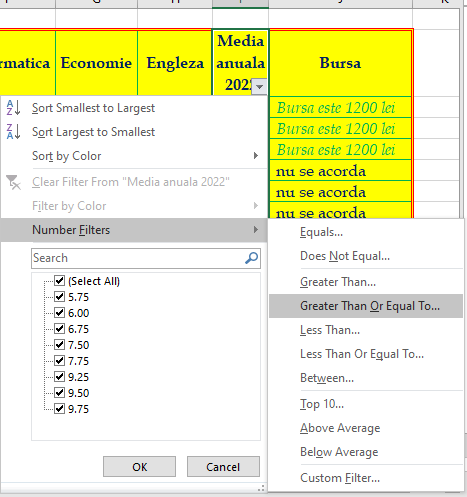 - filtraţi tabelul pentru elevii cu Media ≥ 8;