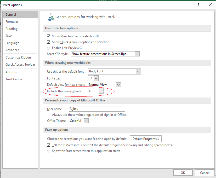 Modificaţi numărul de foi de calcul prestabilit pentru agendele de lucru la patru foi de calcul.
